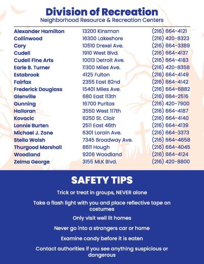 The annual Big City Boo celebration is at all Neighborhood Resource & Recreation Centers. Parents and caregivers can bring children to NRRCs to enjoy candy, costumes, music, games, and much more! Reminder, the general door-to-door residential trick-or-treating is from approximately 6:00 PM to 8:00 PM.